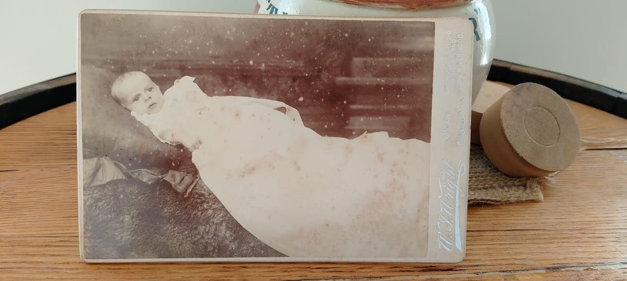 Now, on the face of it, this looks like your average baby photo often found in albums across the land. But it was this message written on the back of the photo that piqued my interest: