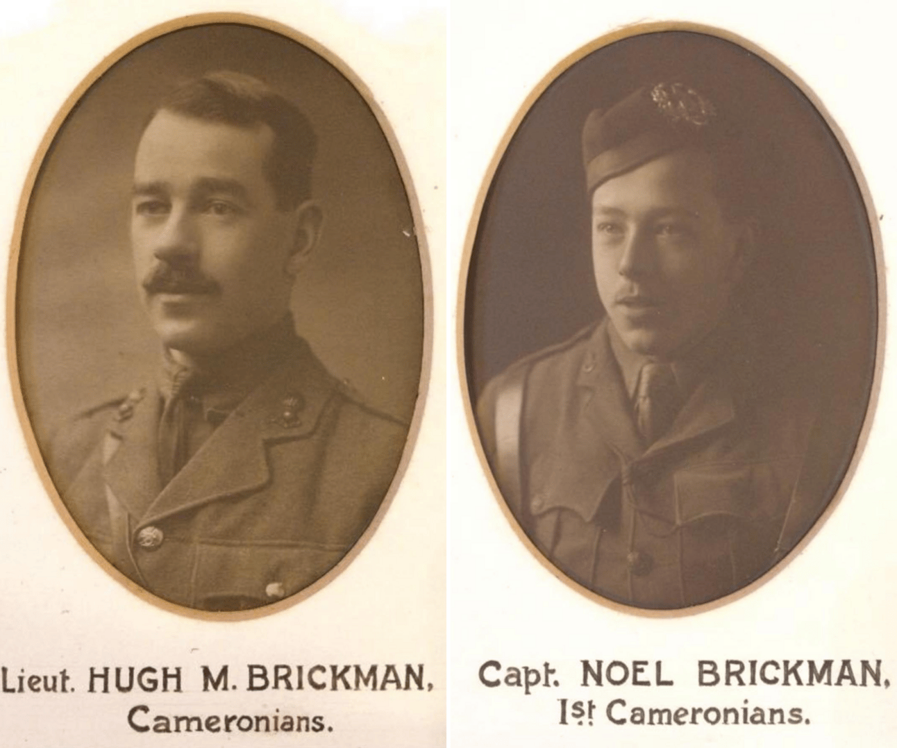 Lieutenant Hugh Brickmann, aged 27, and his younger brother, Captain Noel Brickmann, aged 20, both serving in The Cameronians (Scottish Rifles), lost their lives in France that October. Hugh succumbed to wounds sustained in combat, while Noel was killed in action.
